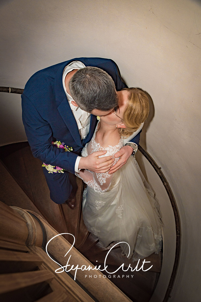 Der wichtigste Augenblick dann, als Conny die Treppe zu ihrem zukünftigen Mann herunter schwebte und sie ihn/er sie dann zum ersten Mal sah.